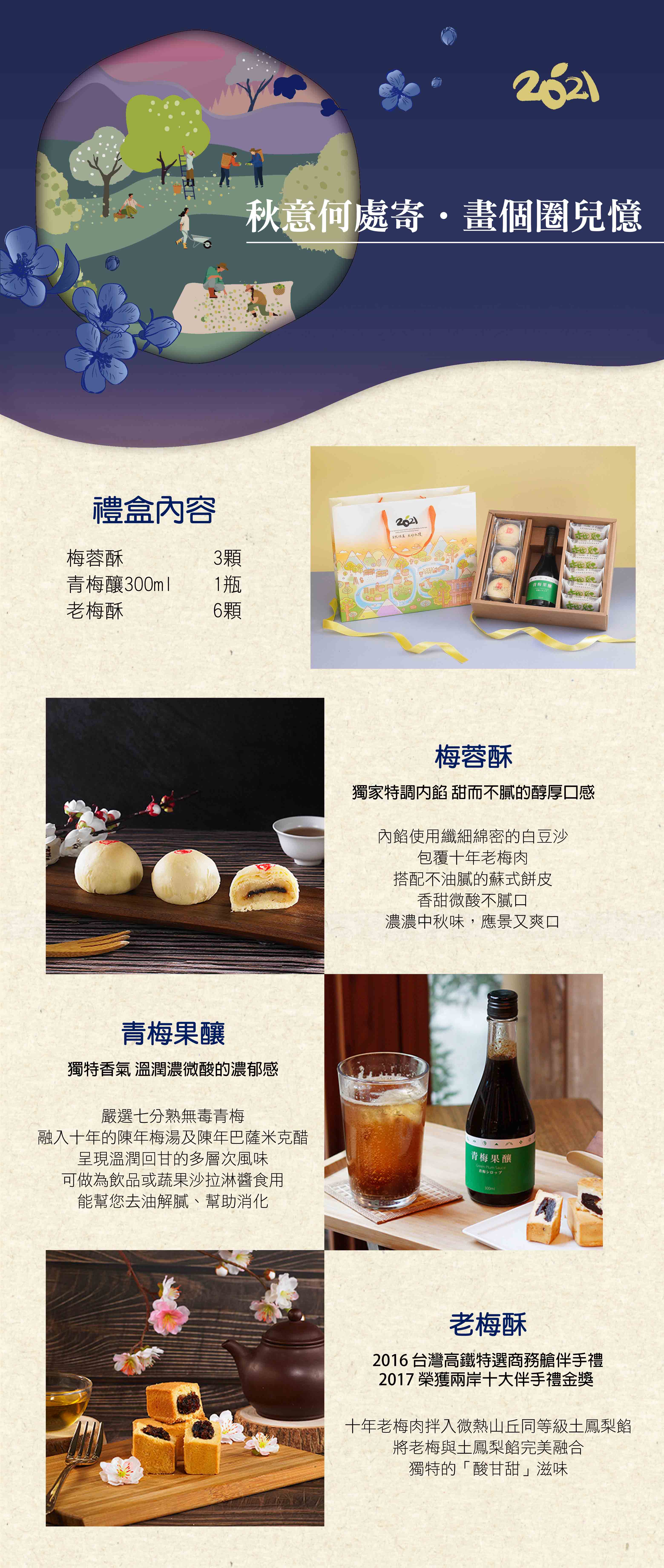 【商品內容】梅蓉酥*3顆 青梅釀300ml*1瓶 老梅酥*6顆