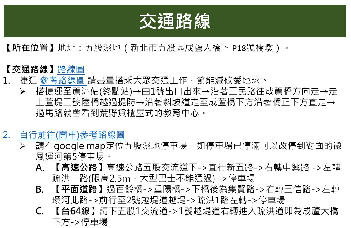 活動地點 : 五股濕地教育中心