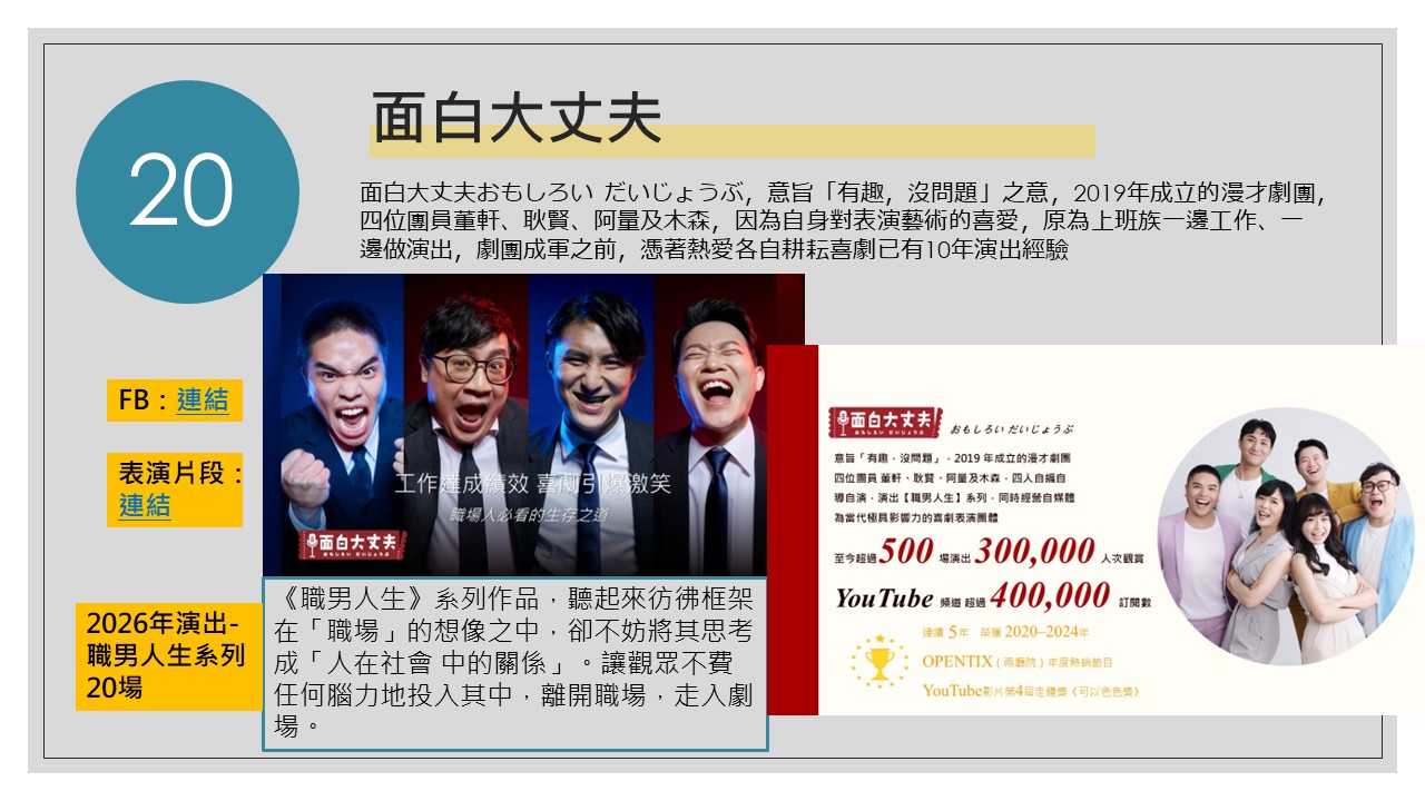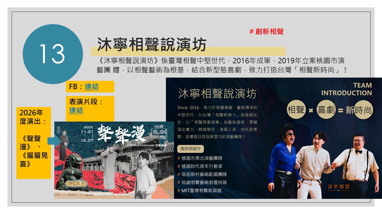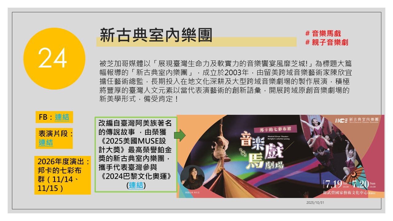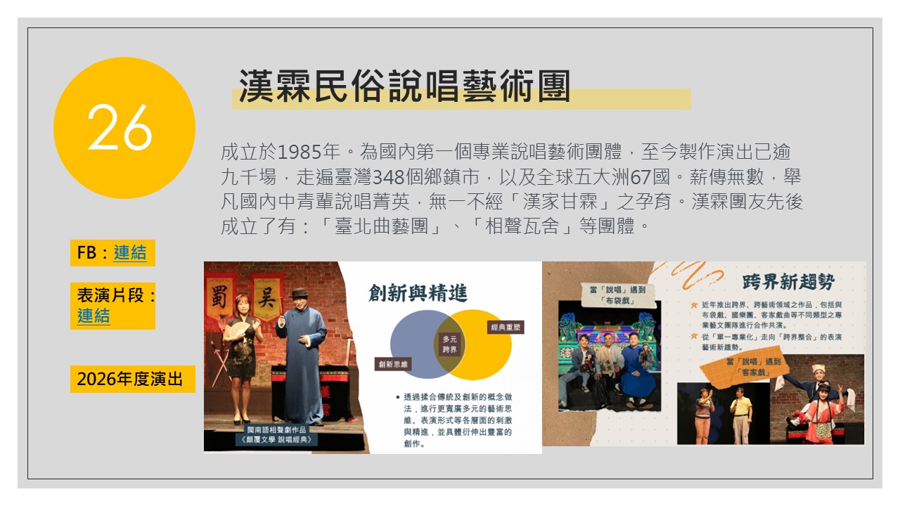 2026年藝文沙龍提案團體簡介檔案下載(附表演片段連結)