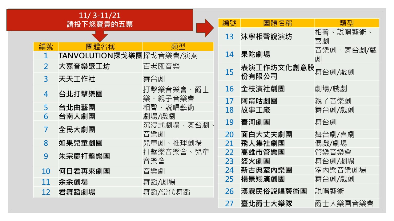 2026年藝文沙龍合作夥伴投票開跑囉!