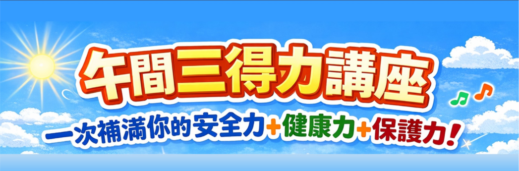 我們精心規劃 6 堂《午間三得力》 講座,帶你在午休補充安全知識、提升健康力。