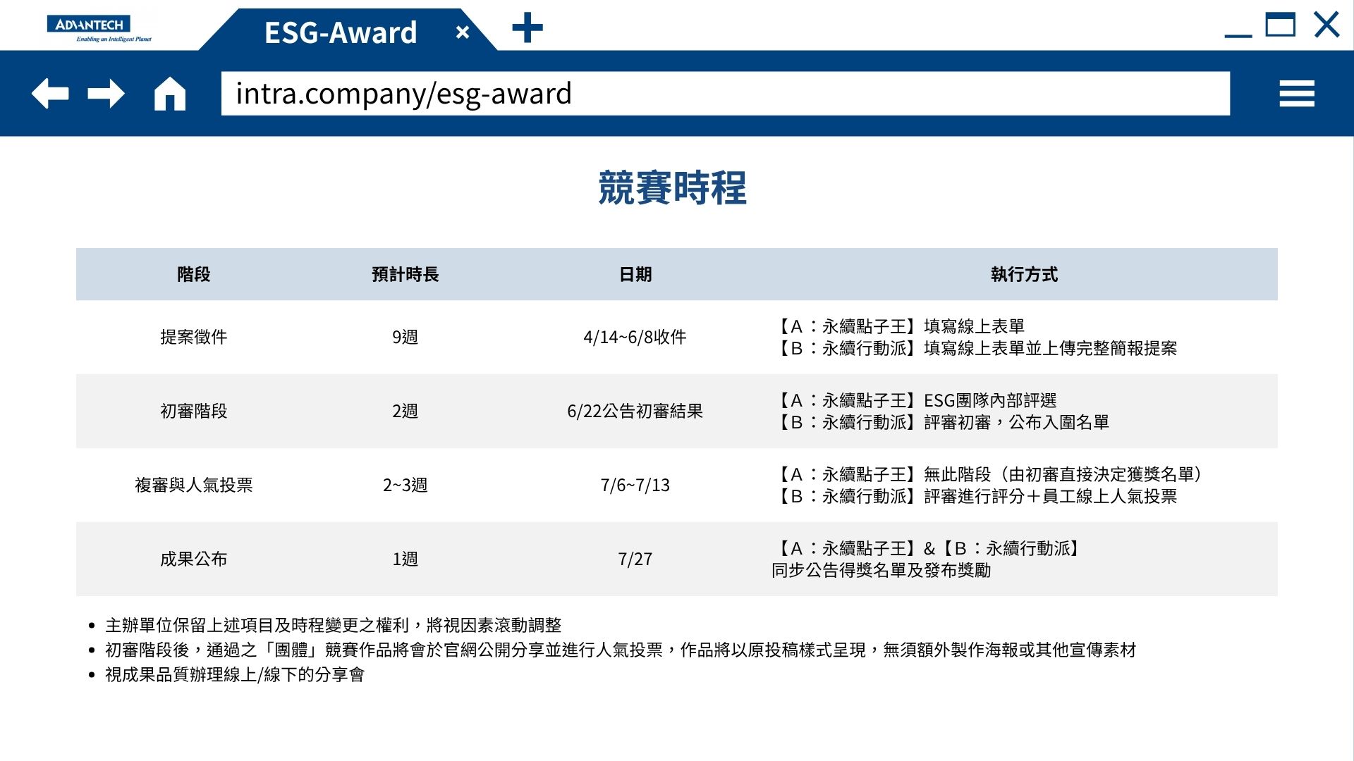 📋競賽資訊(報名請點我)https://esg.advantech.com/zh-tw/awards (請至提案官網填寫完整表單送出、才算完成報名喔!)