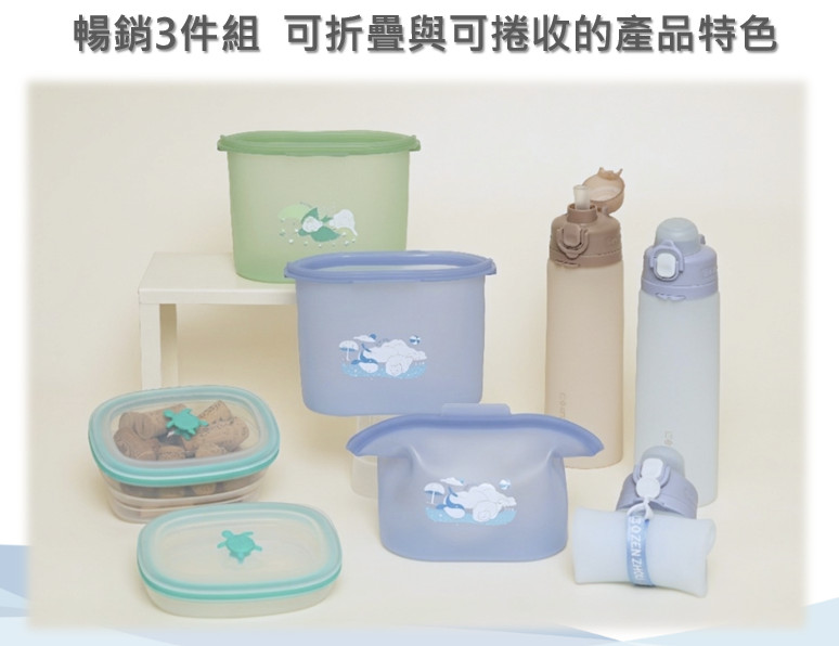 【端午♥愛永續】 仁舟禮盒組:捲捲矽水瓶 + 矽密盒 + 雲朵好矽包 $1,000