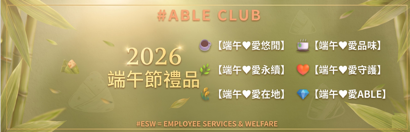 ※端午禮品選擇開放登記至【5/8(一)17:30】截止,未於期限內登記者將由公司統一安排,一律給予ABLE點數23點,還請同仁把握時間登記選擇。