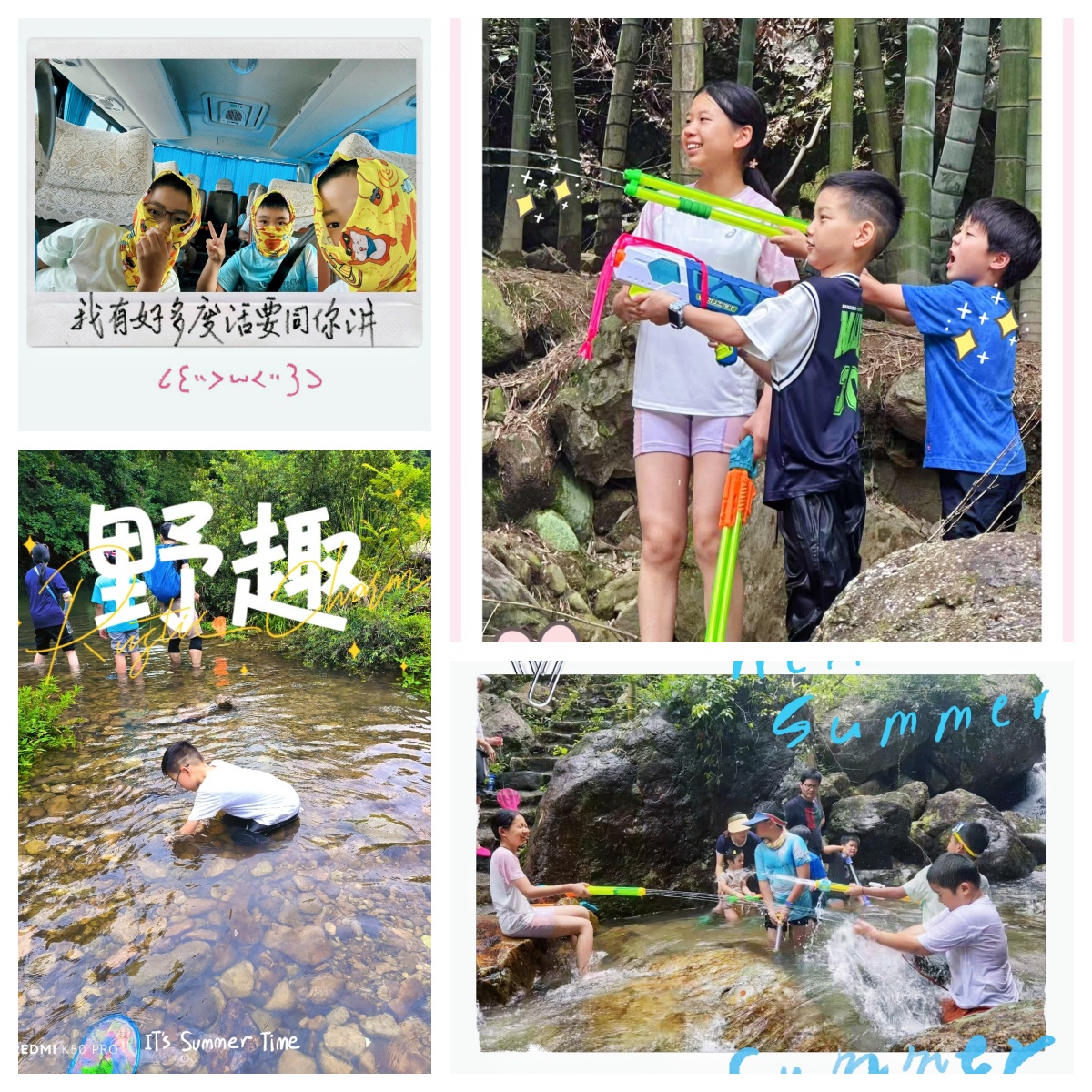 首站溯溪,大小朋友们秒变“水陆两栖战士”!踩着清凉溪水逆流而上,滑溜溜的石头带来无限“尖叫”,水枪大战更是让“湿身”成了最酷勋章!欢笑声在山谷里荡出回音。