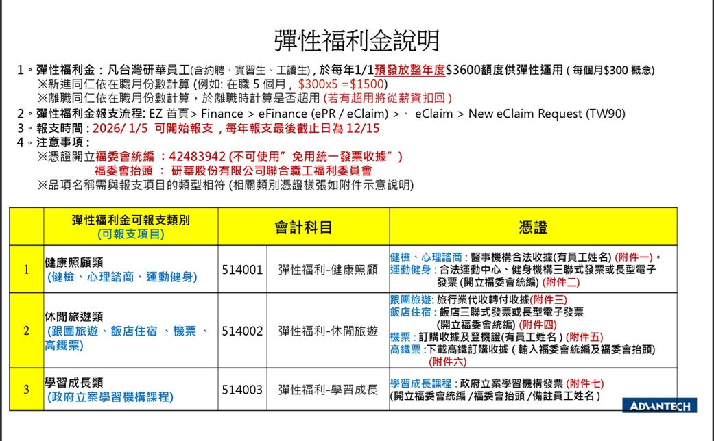 ◆【研華幸福公告】研華台灣福委會彈性福利金實施說明🫶