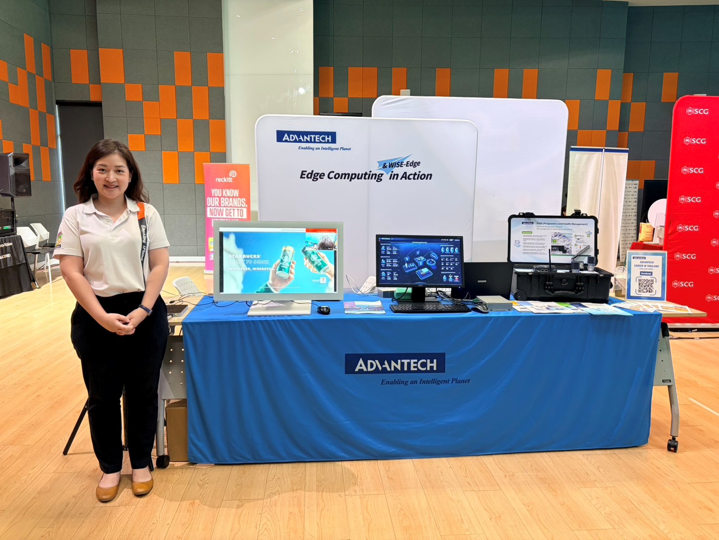 ATH participated in the Global Career Fair at Thammasat University, showcasing the latest innovations in AI through AI Vision and Predictive Health Monitoring (PHM) solutions. The event provided an opportunity for students and job seekers to explore real-world industrial applications of Edge AI, while engaging directly with Advantech’s team to learn about career opportunities and the company’s role in driving smart industry transformation.